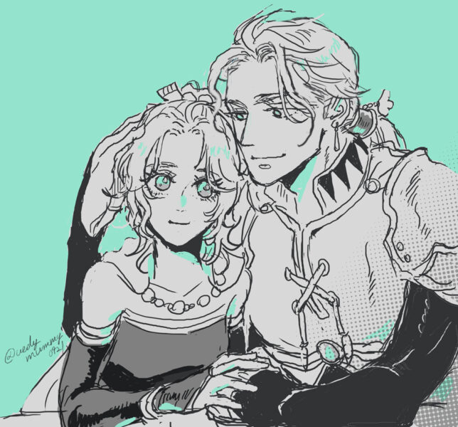 先日、SNSで笑い合ってるエドティナの落書きしたのですがそれの下書きを流用した。なのでエドガーのポーズが大体一緒。寒くなってきたのでくっついている2人を描きたかったんだ…