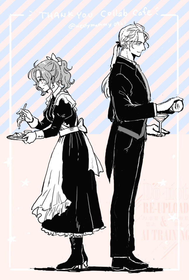 →2025.12.10追記 アトレコラボ衣装な2人がコラボメニューを作る絵、描きました。お互い相手イメージのメニューを楽しそうに作ってたらいいな
